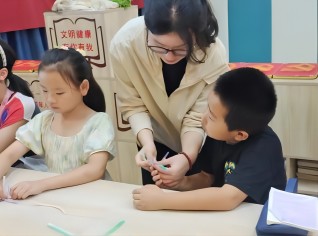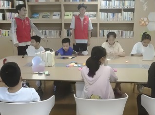 圖為團隊成員帶領(lǐng)小朋友進行手工 南京航空航天大學(xué) 李相旭 攝