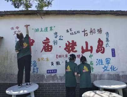 墻繪一直是姥山島的網紅打卡點。為幫助景區提升文化創造力和影響力,走可持續性發展路徑,助力美麗鄉村建設,實踐團成員不顧炎炎烈日,盡情揮灑汗水,在墻壁上繪制出具有姥山島特色文化的關鍵詞和圖案,“焦母文化”“淮軍文化”“古船塘”等島上歷史旅游文化元素躍然“墻上”,每一筆每一劃都傾注了成員們對姥山島文化的理解和尊重。理想的圖紙正變為現實,美麗畫卷在墻面徐徐展開,為小島再添一道靚麗風景。創作期間更有居民誠摯邀請實踐團為其門前空白墻面作畫,這更加推動成員們將墻面變成一幅藝術畫卷的動力。全新墻繪不僅是姥山島的新地標,也成為游客爭相打卡的網紅景點。除全新彩繪外,實踐團還對因長時間風吹雨打導致墻皮脫落、顏料暗沉的墻繪進行了修復,還原了墻繪的本來樣貌。姥山島的面貌正在悄然改變,團隊的實際行動也得到了當地政府和居民的高度評價,為鄉村振興貢獻了青春的力量。