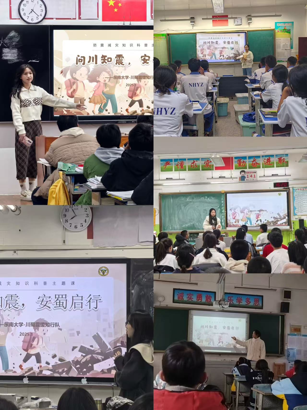 在此基礎上,隊員們深入調研防震減災工作的具體實施措施。團隊協助多所中小學組織開展應急疏散演練,并與消防隊員、建筑工程師、災區居民等進行面對面采訪。通過交流與采訪,團隊成員認識到,防震減災是一個復雜的系統工程,涉及專業救援力量、先進的預警系統、全民參與的防災意識等多個層面的協同工作,正所謂 “單絲不成線,獨木不成林”,只有全社會共同努力,才能共筑堅固的安全防線。川蜀震援知行隊在深入四川多地開展防震減災實踐活動的過程中,不僅親身感受、學習與交流,更將所學所思轉化為實際行動,產出了一系列豐碩的實踐成果。