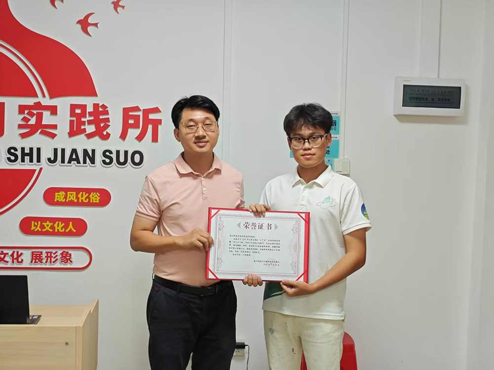 麻斜街道黨政辦吳宇森代表街道辦向實踐團致以誠摯感謝:“感謝同學們頂著烈日、冒著風雨,用畫筆為麻斜披上文化新衣;實踐團隊員們深入調研、建言獻策,用智慧為鄉村振興注入青春動能。并為實踐團頒發"優秀實踐隊"榮譽稱號,并點贊道:"你們用藝術點亮鄉村,用青春書寫擔當,麻斜永遠記得這抹'丹青色’!"