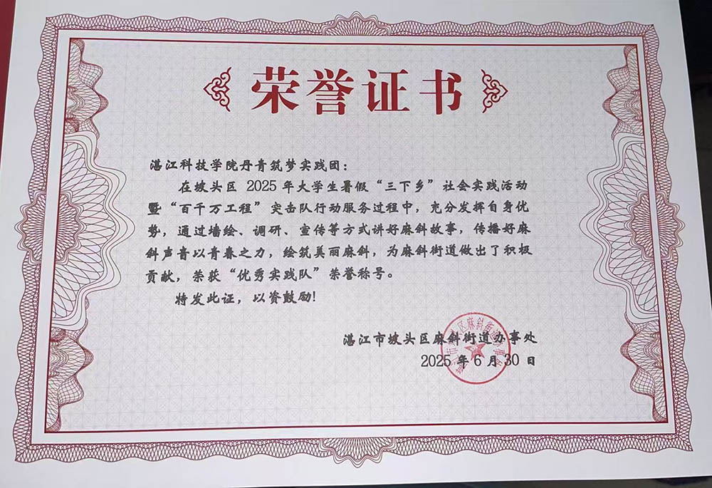 十四天,從陌生到熟悉,從畫筆到真心。湛江科技學院丹青筑夢實踐團將以此次總結為新的起點,繼續以藝術為媒、以青春為筆,在麻斜街道寫下了屬于新時代的鄉村振興故事。丹青繪鄉愁,青春筑夢行。未來,這抹“丹青色"將繼續奔赴山海,用熱愛與堅持,繪就更多美麗鄉村的壯麗畫卷!