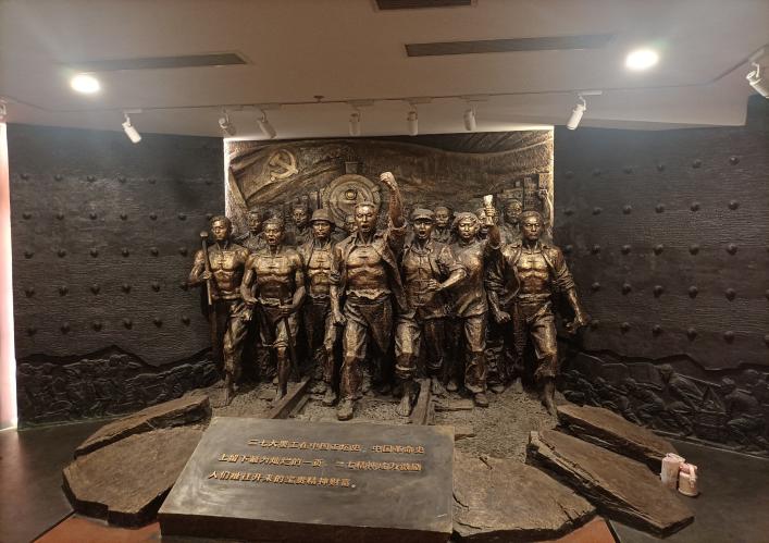 二七紀(jì)念堂位于二七塔的旁邊,是為進(jìn)一步紀(jì)念京漢鐵路工人大罷工而建。紀(jì)念堂內(nèi)陳列著大量珍貴的歷史文物和照片,詳細(xì)記錄了京漢鐵路工人大罷工的全過(guò)程。通過(guò)這些展品,隊(duì)員們不僅了解了當(dāng)時(shí)的歷史事件,更深刻感受到了工人階級(jí)的革命精神和不屈不撓的斗爭(zhēng)意志。