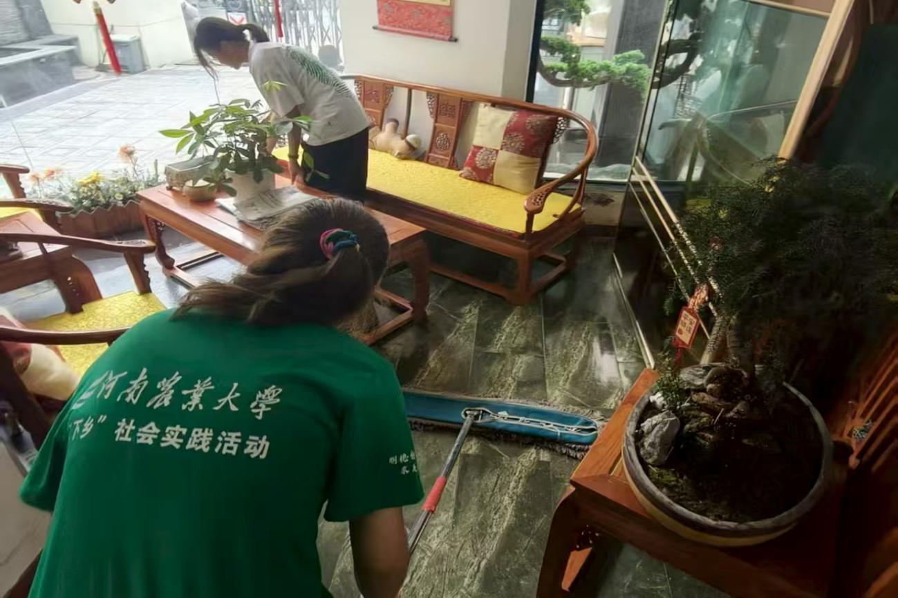 (圖二為成員打掃衛生)團隊成員積極響應“三下鄉”社會實踐的號召,用實際行動為老人們送去溫暖與關懷,踐行新時代青年的責任與擔當。此次三下鄉關愛老人活動,成員們通過親身服務,深刻體會到了關愛老人的社會意義,不但增強了自身社會責任感和服務意識,更豐富了養老院老人們的精神文化生活。