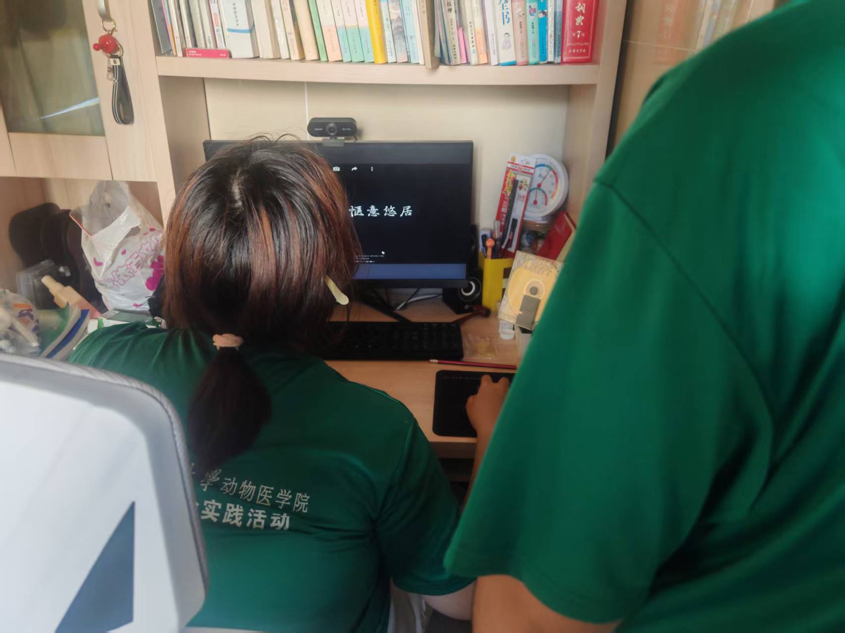 (圖二為隊(duì)員后期制作)在后期制作階段,團(tuán)隊(duì)深度融合新媒體傳播規(guī)律與影視創(chuàng)作技法。他們采用快節(jié)奏轉(zhuǎn)場(chǎng)結(jié)合慢鏡頭特寫的復(fù)合剪輯方式,在15-30秒的黃金時(shí)長(zhǎng)內(nèi)實(shí)現(xiàn)視覺(jué)沖擊;精心雕琢"在陶灣,遇見(jiàn)詩(shī)和遠(yuǎn)方""此心安處是吾鄉(xiāng)"等富有網(wǎng)感的金句;精選28首原創(chuàng)民謠與輕音樂(lè),實(shí)現(xiàn)聲畫藝術(shù)的有機(jī)統(tǒng)一;還創(chuàng)新設(shè)計(jì)片尾彩蛋,嵌入定位導(dǎo)航、優(yōu)惠信息等實(shí)用內(nèi)容,構(gòu)建觀賞共鳴消費(fèi)的完整鏈路。