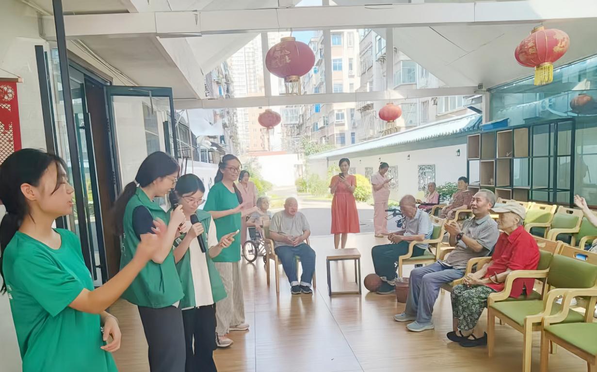 7月2日下午,考慮到老人們上午已耗費(fèi)不少精力,他們決定為老人表演才藝。負(fù)責(zé)人早已備好音響和話筒,大家先唱起了《青花瓷》《我和我的祖國》等歌曲,這些演唱贏得了老人們熱烈的掌聲。望著老人們臉上洋溢的笑容,他們的歌聲里也透露出濃濃的愉悅。