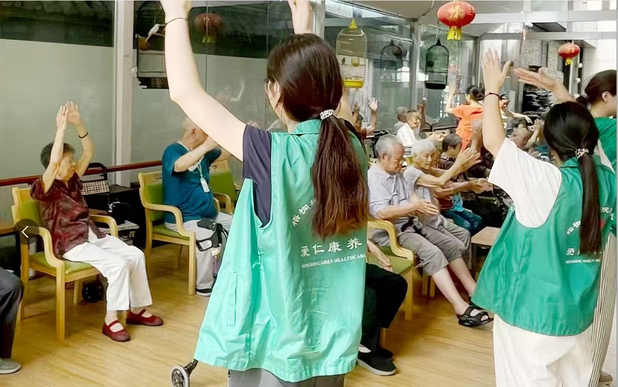 衛生清掃結束后,實踐團組織了適合老人的全身拍打操互動環節。考慮到老人的身體狀況,他們特意選擇了動作簡單、節奏舒緩的體操,先逐一向老人們講解肩、背、腰等關鍵部位的準確位置,再分散站位進行慢動作示范,確保每位老人都能看清。面對起初有些害羞或動作不規范的老人,成員們主動上前進行一對一引導和鼓勵。活動現場氣氛溫馨融洽,老人們全程面帶笑容,積極投入,活動時長遠超預期。老人們由衷地稱贊成員們青春有活力,感謝他們的陪伴。