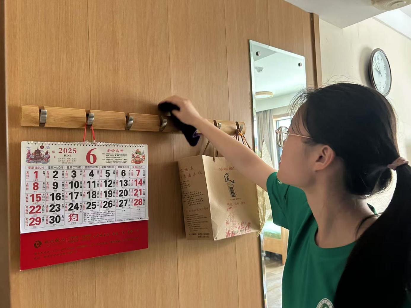 活動中,隊員們展現出飽滿的熱情和嚴謹的態度,開展了深度清潔工作:細致擦拭老人居室、公共活動區、庭院走廊的窗框、家具,徹底清掃地面,并對庭院綠植進行科學澆灌和除草,顯著優化了居住環境。同時,團隊協助工作人員對儲物空間進行科學歸整,有序處理閑置物品,顯著提升了空間利用效率與安全性。
