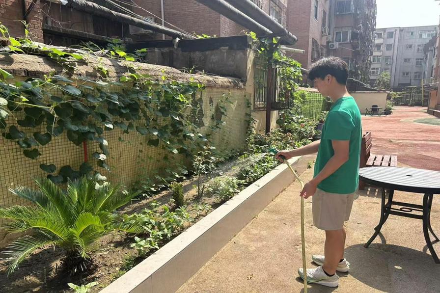 (圖三為隊(duì)員花園澆水)