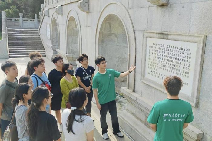 在前往烈士紀念塔的途中,塔前祭奠的菊花在盛夏中格外醒目,為炎熱的夏日平添一份肅穆與追思。通過閱讀紀念塔前的介紹,并結合曾到訪隊員的補充講解,團隊成員對湖南革命史有了更深刻的理解。隨后,成員們緩步進入紀念塔內,通過珍貴的歷史文物和影像資料,近距離感受革命先烈的英勇事跡。