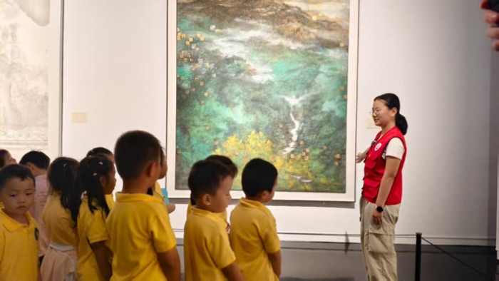 7月26日,實踐隊來到了鄭州市美術館參觀學習第十四屆全國美術作品展覽進京作品巡展·河南。參觀展館時,實踐隊成員偶遇了幼兒園小朋友以及其他大學生社會實踐隊,實踐隊成員和他們積極交流,友好往來,實踐隊成員向小朋友們講解畫作,與其他大學實踐隊成員交流學習心得、合影留念。此次實踐活動,為繁榮發展中國美術事業,推進文化自信自強,鑄就社會主義文化新輝煌作出貢獻。
