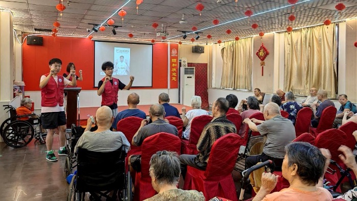 尊老愛老是中華民族優秀傳統美德,7月21日,實踐隊來到了第一站:鄭州頤和養老院。實踐隊成員與老人們一同體驗扭扭棒、拼圖游戲。期間,隊員們耐心講解,積極互動,和老人們親切交流,并為老人們手工制作艾草錘。在成員們的引導下,老人們學會使用扭扭棒塑造出自己想要的造型,拼出美麗的圖畫,每一位老人的臉上都洋溢著幸福的笑容。,