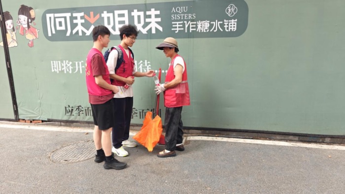 7月25日,實踐隊應金水區共青團委員會之邀,于上午9時來到團委辦公室交流學習。雙方就青少年心理健康問題分享經驗,商討解決方案。實踐隊負責人結合工作經驗,提出開展互動性心理健康活動的方針,受到了團委老師的肯定與采納。下午4時,實踐隊成員帶著對勞動者的敬意,于大街小巷里的勞動這么們攀談,深深感受到平凡崗位上的堅守與擔當。考慮到夏日高溫,隊員們特意準備了礦泉水,一一遞到工人們手中。接過清涼的礦泉水,工人們臉上露出樸實的笑容。