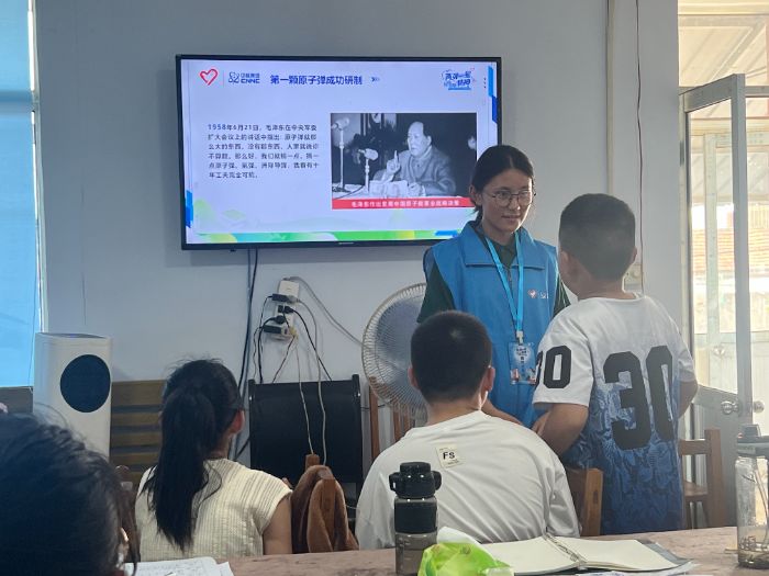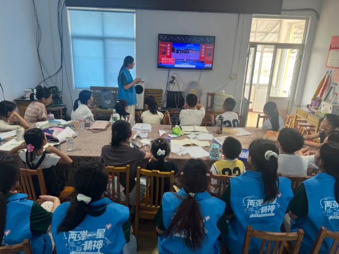 宣講并非單向的輸出,互動(dòng)環(huán)節(jié)成為點(diǎn)燃孩子們熱情的火種。“兩彈一星知識(shí)問(wèn)答”中,小手如林般舉起,孩子們爭(zhēng)著分享對(duì)“兩彈一星”的認(rèn)知;“精神關(guān)鍵詞接力”時(shí),“愛(ài)國(guó)”“奉獻(xiàn)”“拼搏” 等詞匯接連迸發(fā),他們用稚嫩的聲音,訴說(shuō)著對(duì)偉大精神的理解,還踴躍講述自己知道的科學(xué)家故事,將宣講推向一個(gè)又一個(gè)高潮。