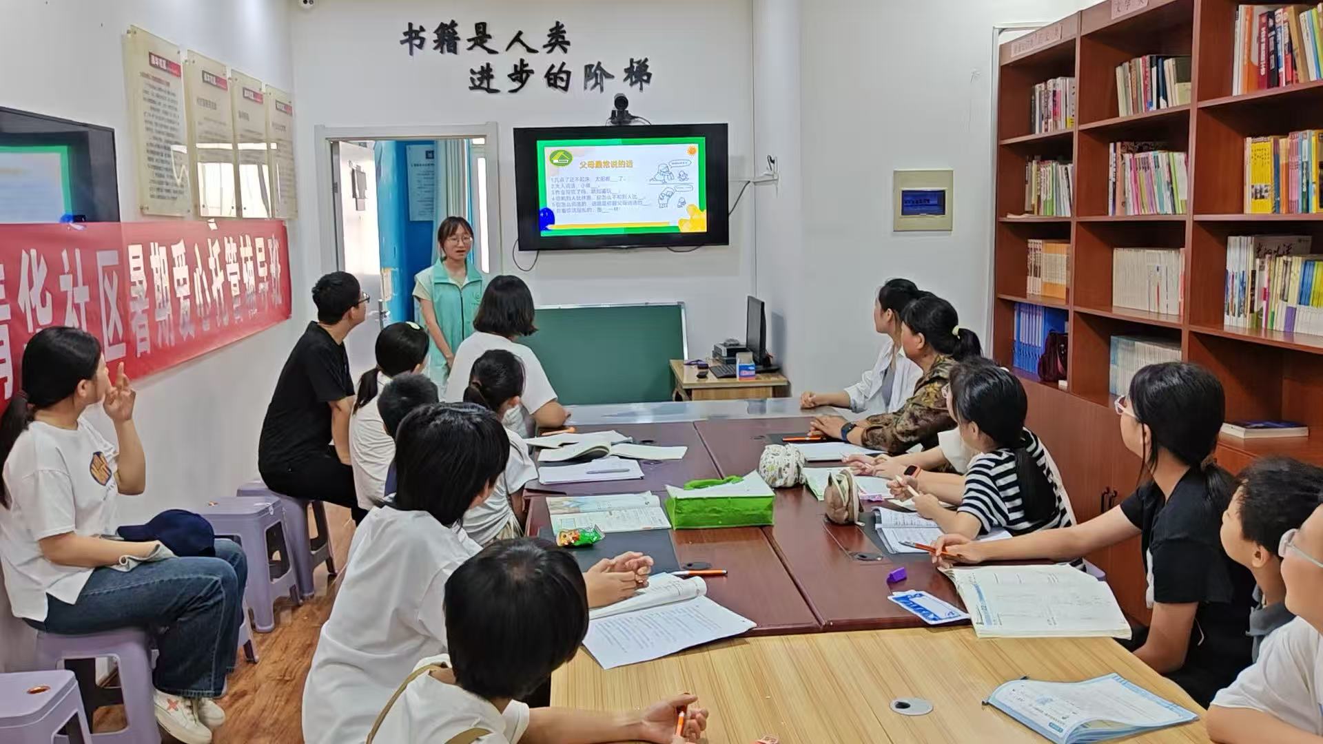 圖為團隊成員幫助社區青少年積極參與小游戲“對話模擬秀”。徐越 供