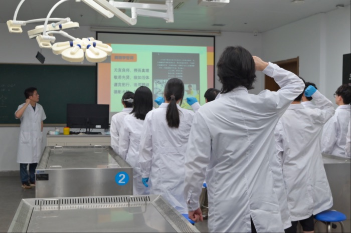 在實踐期間,團隊成員還組織進行了人體標本室的參觀學(xué)習(xí)。整個過程以先由各小組各自參觀并學(xué)習(xí)標本,然后每小組進行輪流匯報并由其他小組提問。通過觀察標準標本,團隊成員能更加精準地定位解剖結(jié)構(gòu),明確制作標本時要保留的重要結(jié)構(gòu),從而減少操作錯誤,提升標本制作治療并培養(yǎng)嚴謹?shù)目茖W(xué)態(tài)度。小組講解也鍛煉了團隊成員的分析與表達能力,而提問環(huán)節(jié)則直擊實操痛點,這種“觀察——總結(jié)——答疑”的模式能夠有效提高學(xué)習(xí)效率,使團隊成員對后續(xù)制作標本充滿信心。