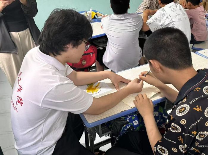 為培養學生關注弱勢群體、幫扶他人的社會服務意識,營造理解、尊重、關心和幫助特殊兒童的社會氛圍,南陽理工學院數字媒體與藝術設計學院“藝術之光,溫暖童心”志愿服務團隊于7月6日前往南陽市臥龍區潛能教育培訓學校開展實踐活動,通過心理輔導、藝術治療等一系列豐富多彩的活動,搭建起青年學生與特殊兒童之間的溝通橋梁。他們以畫筆為橋,以創意為舟,為困境兒童、流動兒童、留守兒童等群體精心繪制了一個充滿希望的“七彩假期”,為困境兒童、流動兒童、留守兒童以及新興領域群體未成年子女等少年兒童群體帶去溫暖與關懷,為孩子們打造一個充滿色彩與希望的假期,通過藝術課程與活動激發他們的創造力與想象力。同時,關注孩子們的心理健康,通過藝術治療與心理輔導幫助他們建立自信,緩解心理壓力,促進全面健康發展,切實地增強大學生對弱勢群體的深刻理解、寬廣包容以及強烈的同理心,共同推動構建和諧社會的美好愿望。