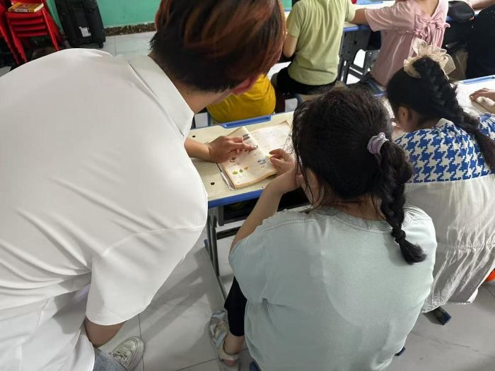 圖為實踐隊員輔導學生寫作業。張志恒 供圖