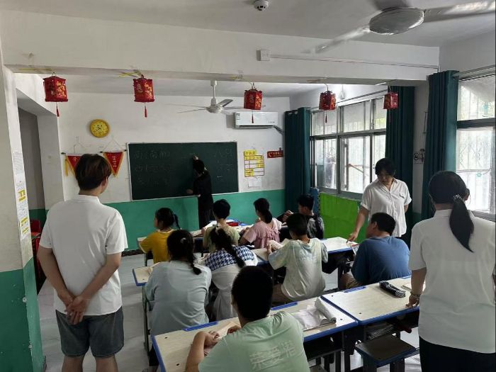圖為實踐隊員輔導學生功課。張漢榮 供圖