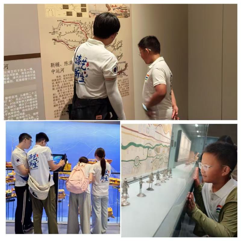 實踐團隊走進中國大運河博物館,聚焦數字化展陳技術,借助文物三維掃描、AR增強現實等技術,追溯運河文化的演變,仔細分析1:1復原漕船的數字化建模技術。在揚州東關街,隊員們走訪漆器、剪紙等非遺店鋪,與傳承人深入交流工藝數字化采集和虛擬展示方案。