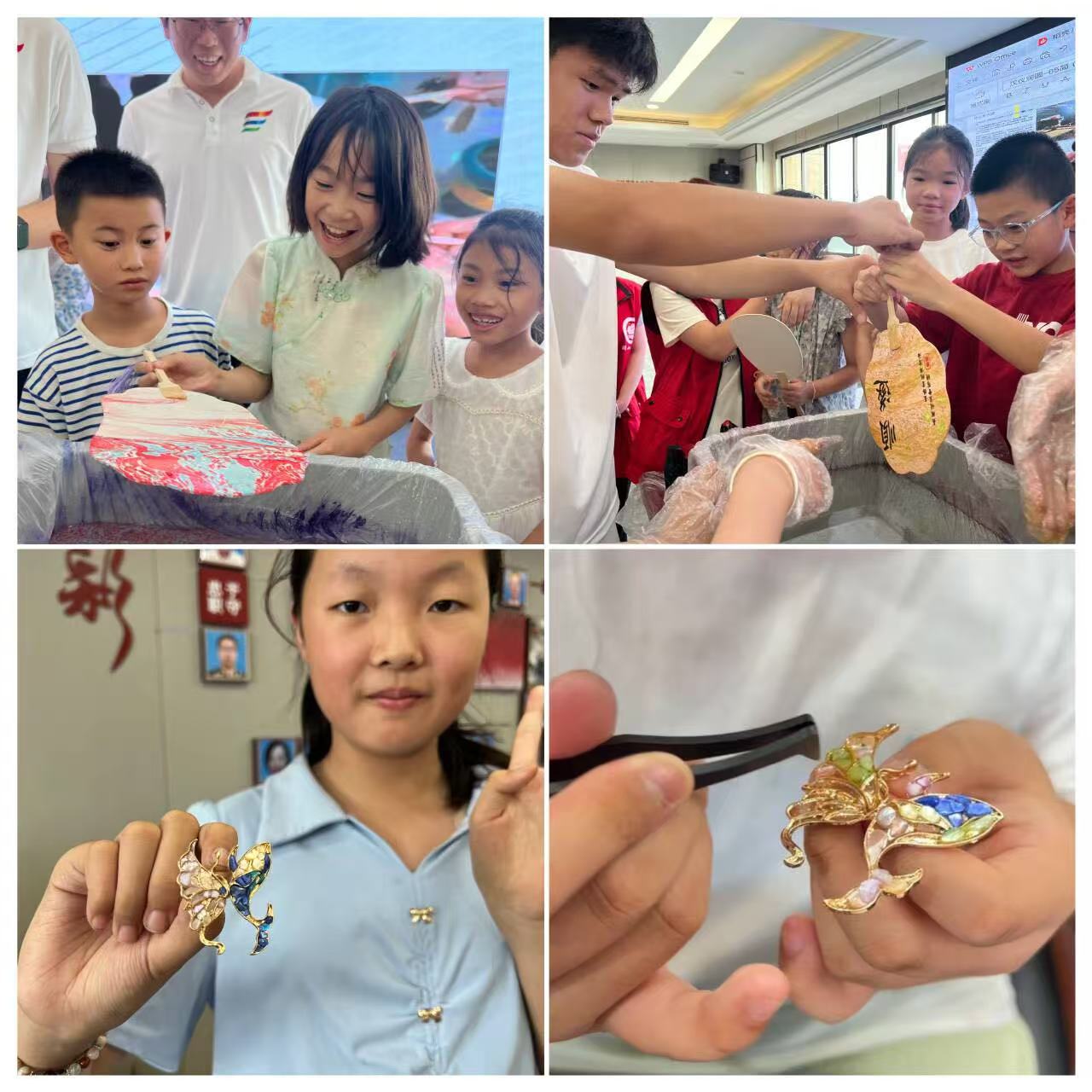 在南京溧水團山社區,團隊以“理論講解+實踐體驗”的形式開展“大漆與螺鈿”課程。“小小宣講員”周正分享了自己對漆器工藝的感受,孩子們在隊員們的指導下,體驗了漆扇、螺鈿胸針制作。家長們紛紛表示,活動“有趣又有教育意義”。