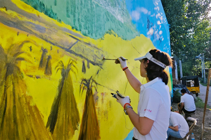 南陽理工學院:青春力量,筆尖流淌鄉土情,墻繪點亮新鄉村