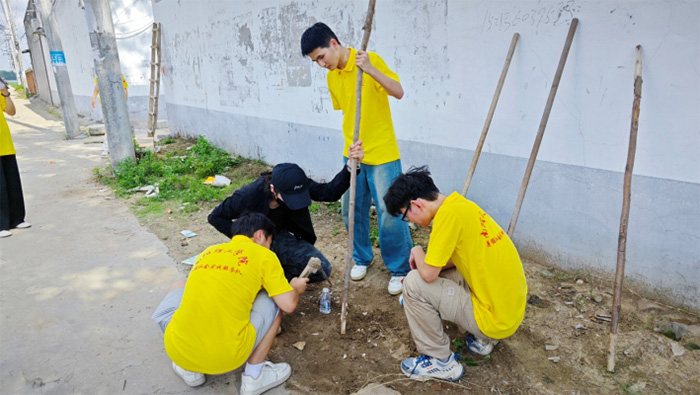 七月的鄉村,一支由南陽理工學院土木工程學院師生組成的“同聲童語·筑夢未來”三下鄉實踐隊,帶著顏料、畫筆和滿腔熱忱,走進了南陽市新店鄉夏響鋪村。他們穿梭在村莊的街巷間,目光所及之處,是斑駁的墻面、樸素的民居,而他們心中,早已勾勒出一幅幅充滿鄉土氣息的畫卷。他們用青春的筆觸,為這片土地注入新的活力,讓墻繪成為連接藝術與鄉村的橋梁,點亮鄉村振興的新圖景。