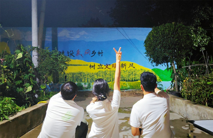 圖為墻繪完成后實踐服務隊員打卡留念。李珂 供圖
