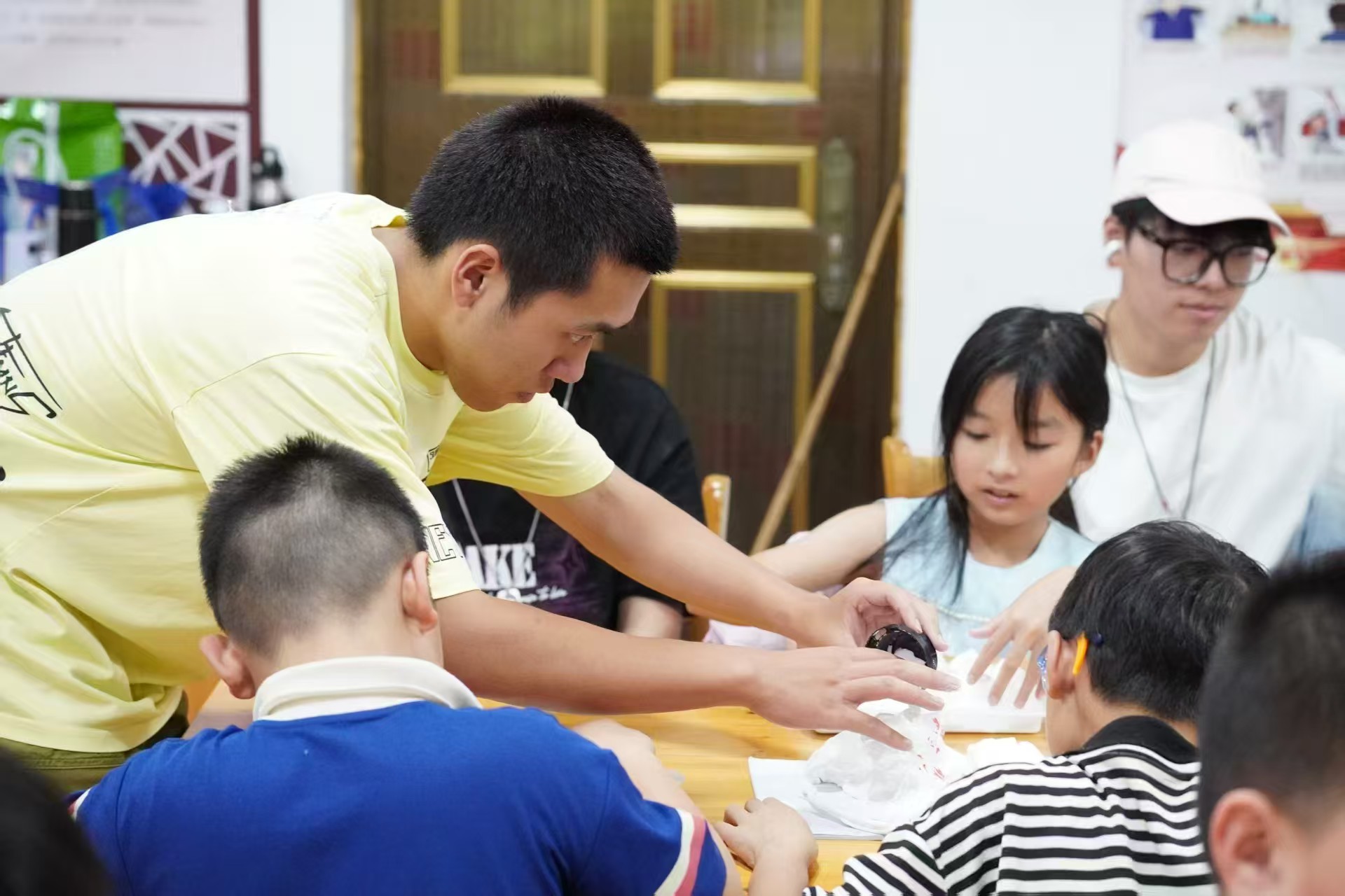圖 3-2四分哥哥指導孩子們做火山爆發實驗 (劉文浩 供圖)