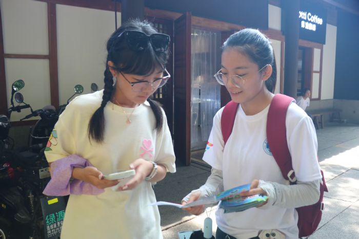 圖為實踐隊員在林則徐紀念館周圍開展禁毒活動 李玥彤 攝
