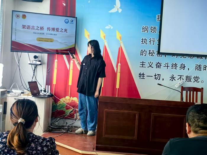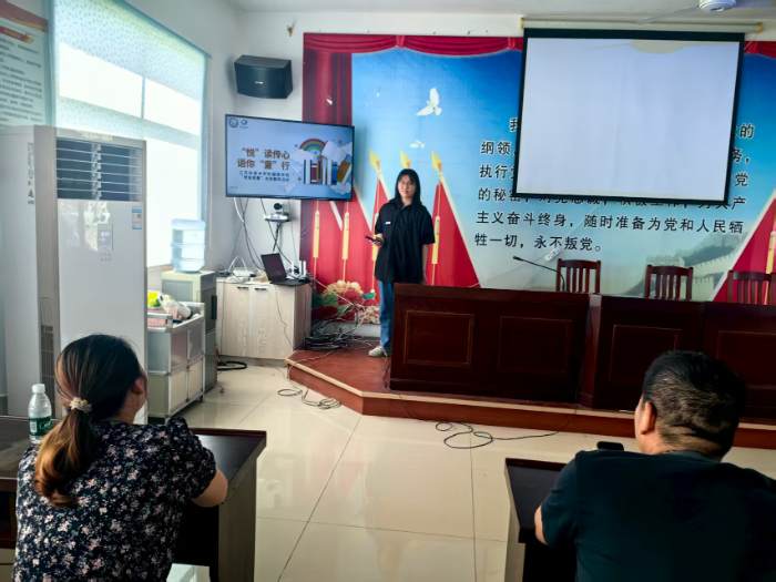 7月20日上午,南坎社區(qū)居民委員會(huì)圖書室里,13組親子家庭已按指引就座。來(lái)自江蘇科技大學(xué)的志愿者打開(kāi)投影儀,一份題為“悅讀傳心,語(yǔ)你童行”的PPT在幕布上亮起。