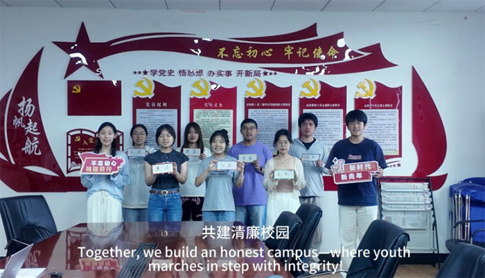 在制作過程中,團隊運用多機位拍攝、專業剪輯等新媒體技術,確保公益廣告的制作質量。作品畫面取景校園實景,節奏清新明快,更符合青年受眾的審美特點。“相比傳統宣傳方式,公益廣告的形式更具感染力,能更好地傳遞廉潔理念。”商務英語專業2023級(2)班姜皓月介紹道。