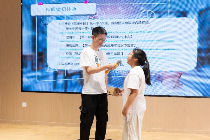 活動當天,課程由支教團成員阮葉進行授課,他用生動有趣的語言,向孩子詳細解釋了VR技術的定義、原理以及它在各個領域的應用,讓孩子們對這項前沿技術有了初步的了解。