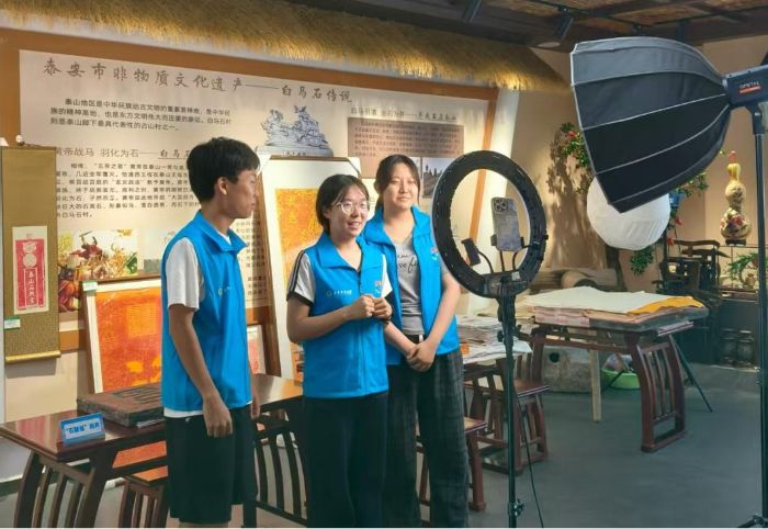 實踐團一行輾轉(zhuǎn)至泰山區(qū)白馬石村,在白馬石村接待員的引導下,參觀了村莊黨群服務中心、文化活動室及紅色資源陳列點,初步了解村莊歷史沿革、紅色底蘊及青少年教育現(xiàn)狀,為后續(xù)活動開展奠定基礎(chǔ)。在村文化活動室,成員們參與了非遺拓片體驗活動。在當?shù)胤沁z傳承人的悉心指導下,他們親手拿起鬃刷、鋪展宣紙,小心翼翼地體驗著這一傳統(tǒng)技藝的奧妙。實踐團成員袁浩陽說:“通過拓印清代‘忠義碑’題刻,指尖觸碰歷史遺存的凹凸紋路,仿佛與先輩進行了一場跨越時空的對話,讓紅色文化傳承更具體可感。”此次體驗活動同步進行線上直播,吸引千余名師生在線觀看,不僅有效擴大了實踐活動的影響力,而且使更多人關(guān)注到非遺傳統(tǒng)文化拓印。