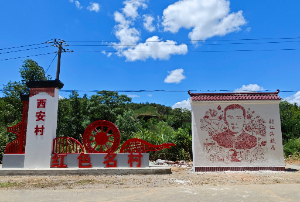 (圖為“紅色名村”村牌和紅色瓷墻全貌,李雨恒、王迎風、王一如供圖)