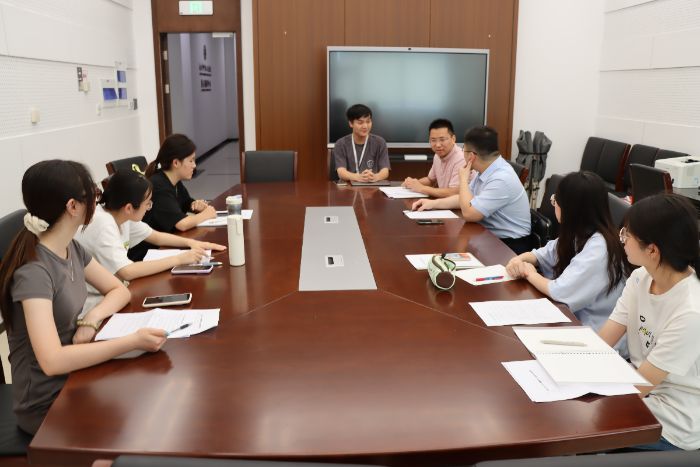 圖為團隊與江蘇省海外發展協會秘書長佘昊明開展訪談