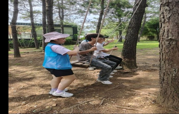圖為實踐小隊在紅楊和平森林公園與游客游玩 唐靜雯 供圖
