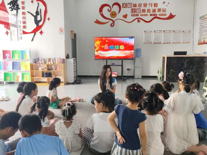 活動最后,小朋友們列隊站好,在志愿者的領唱下傳唱《歌唱祖國》等經典愛國兒歌,清脆的歌聲回蕩在教室,展現出無限的純真活力。傳唱愛國兒歌作為藝術教育實踐,以集體參與、過程體驗為核心,借歌聲傳遞愛國情,既培育音感,也厚植團隊意識,讓純真童聲成為價值觀培育的生動注腳 。