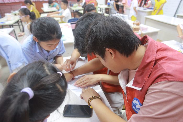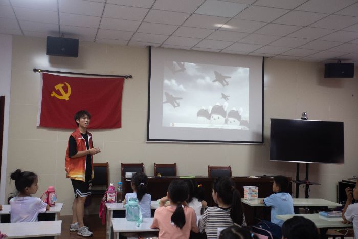 ▲圖為實踐團志愿者向社區兒童講述抗美援越老兵的烽火故事劉慧鵬 攝