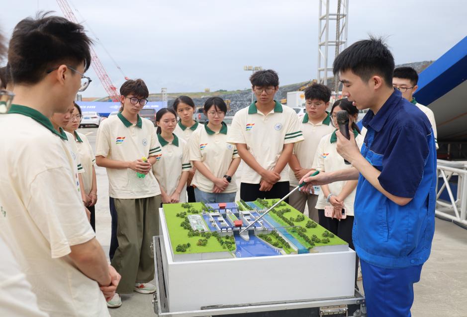 圖為實踐團(tuán)成員在欽州集裝箱自動化碼頭進(jìn)行調(diào)研(通訊員楊婷媛攝)