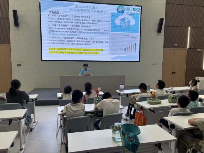 7月8日,邗源社區的防汛抗旱知識課堂熱鬧開講。實踐團以“身邊的水風險”為切入點,結合江蘇“河網密布、季風影響”的地理氣候特點,講解梅雨內澇與伏旱缺水的“季節性規律”。從地下空間積水逃生技巧到家庭節水妙招,從“觸電避險”到“高溫防火”,最終提煉出“觀、避、救”三字訣助力記憶。互動問答中,孩子們踴躍搶答“溺水自救禁忌”“暴雨天蹚水風險”等問題,實踐團發放的防汛文創產品,讓安全知識隨日常使用悄然扎根。