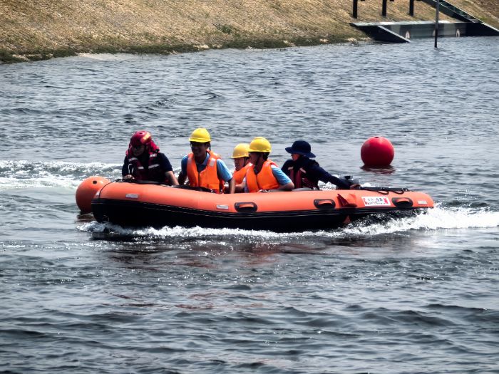 7月10日,江蘇省防汛防旱搶險訓練中心成了“練兵場”。教官詳解管涌、漫頂等險情的處置原理,強調“反濾導滲”、“土袋疊放角度”等實操細節。成員們頂著烈日搬沙袋、筑圍井,在模擬險情中練就“應急反應力”。午后乘沖鋒舟沿河巡堤,工作人員傳授“觀植被識滲漏”的基層經驗,結合智能監測設備的應用,展現“從人工巡堤到科技賦能”的防汛升級,讓成員們真切感受國家水網建設帶來的效能提升。