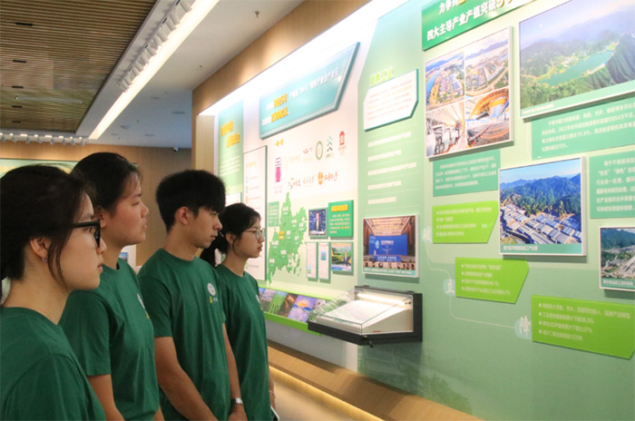 活動伊始,實踐隊抵達后洋村,講解員帶領大家參觀了“三庫+碳庫”生態文明實踐主題展。一幅幅圖文并茂的展板生動展示了后洋村如何將森林資源轉化為“水庫、糧庫、錢庫、碳庫”的實踐路徑——通過科學管理和合理利用森林資源,提升森林生態系統的水源涵養能力、糧食生產能力、經濟產出能力和碳匯能力,實現生態、經濟和社會效益的多重提升。
