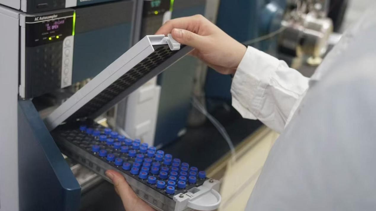 圖為實踐隊隊員使用高效液相色譜儀分析樣品。曾歆然 供圖