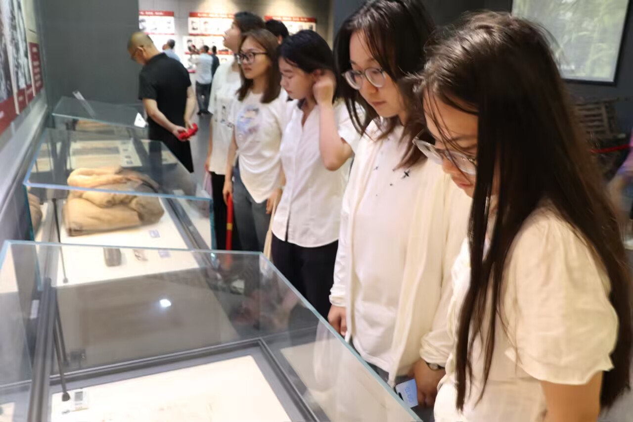 8月2日清晨,南京財經大學三下鄉團隊懷著崇敬的心情來到新四軍黃橋戰役紀念館。館內的每一件文物都承載著一段崢嶸歲月,從銹跡斑斑的步槍到泛黃的作戰地圖,從戰士們穿過的補丁軍裝到百姓支援前線的扁擔,無不訴說著當年的浴血奮戰。團隊成員們認真聆聽講解員的介紹,不時在筆記本上記錄關鍵信息。在“軍民魚水情”展區,當聽到當地百姓連夜趕制燒餅支援前線的故事時,不少同學眼眶濕潤。團隊成員潘穎表示:“課本上的歷史在這里變得鮮活可觸,革命先烈的犧牲精神讓我深受震撼。”
