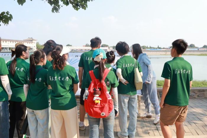 圖為團隊成員聆聽講解員介紹運河水利工程。宮穎慧 供圖