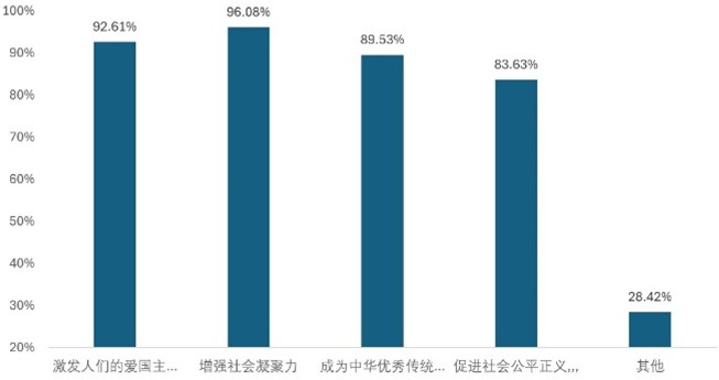 大別山精神的影響體現(xiàn)在個人與社會兩個層面。個人層面,82.05%的人認(rèn)為它能增強勇氣和毅力,91.43%覺得可培養(yǎng)團隊合作精神,88.16%表示能增強奉獻(xiàn)和無私行為,74.58%認(rèn)為能提高個人責(zé)任感和紀(jì)律性,可見其為個人成長提供著精神動力。社會層面,92.61%認(rèn)為能激發(fā)愛國主義熱情,96.08%覺得可增強社會凝聚力,89.53%表示是優(yōu)秀傳統(tǒng)文化價值觀的重要組成,83.63%認(rèn)為能促進(jìn)社會公平正義,足見其在社會建設(shè)中作用顯著,值得廣泛弘揚。
