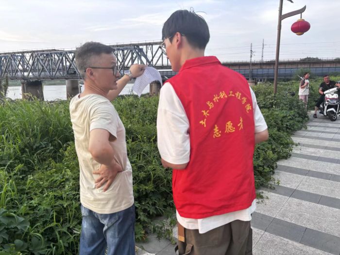 圖為團隊成員在淮河沿岸做問卷調(diào)查