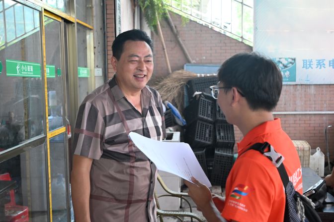 團(tuán)隊(duì)成員與錦屏鎮(zhèn)水果交易中心收購公司進(jìn)行訪談。楊佳奇 供圖