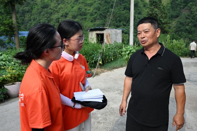 團(tuán)隊(duì)成員在三洞村進(jìn)行入戶走訪調(diào)研。楊佳奇 供圖