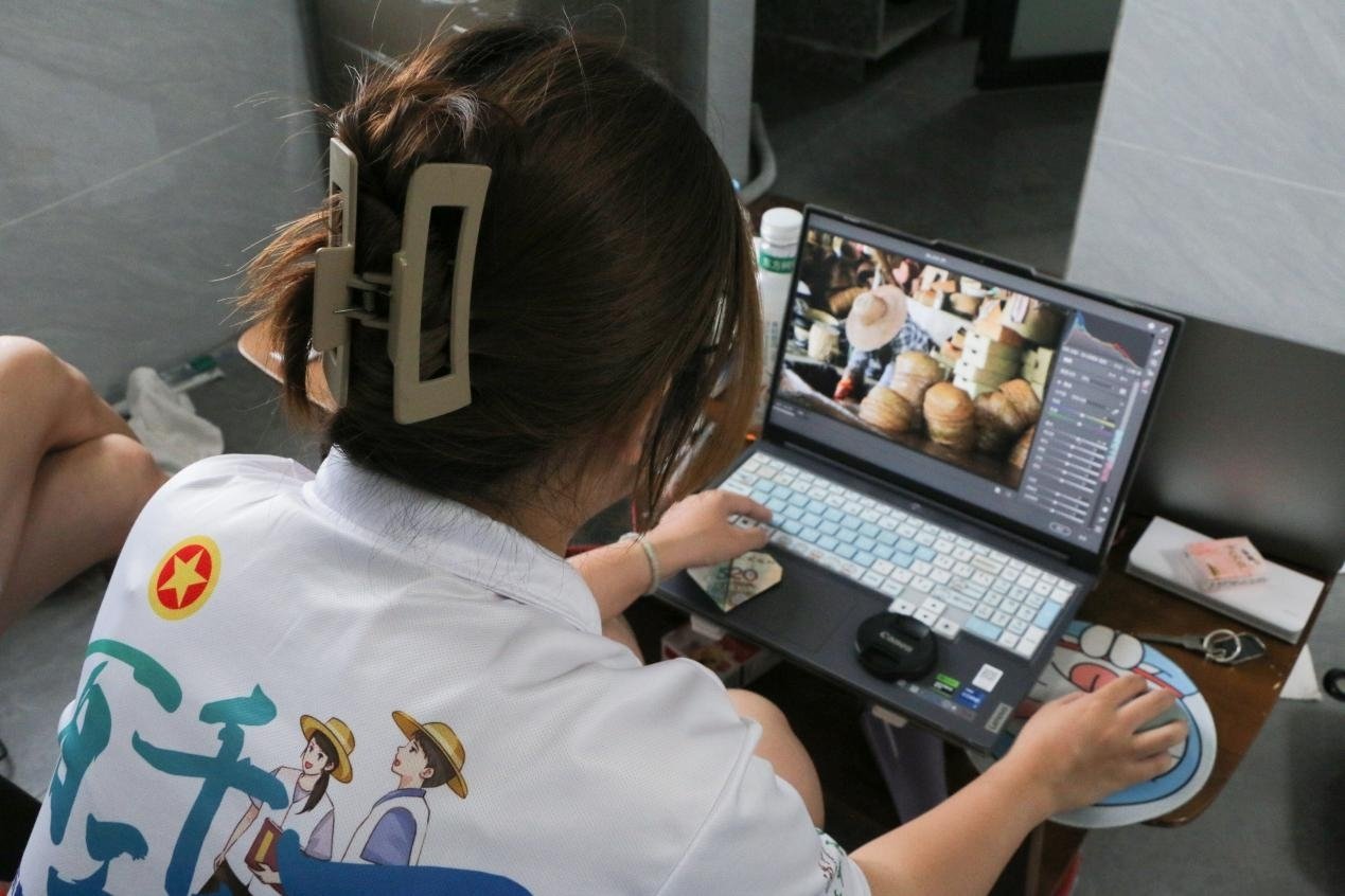 圖為修圖工作過程 陳琴芳 攝后期制作中,攝影組成員傾注心力打磨視頻。他們對拍攝素材細致剪輯,從畫面拼接、節奏把控到內容呈現,反復修改完善,力求精益求精。最終呈現的一個個精美視頻,既生動彰顯了蒲草文化的獨特魅力,也鮮活展現了實踐活動的豐碩成果,讓傳統技藝與青春實踐在光影中綻放光彩。